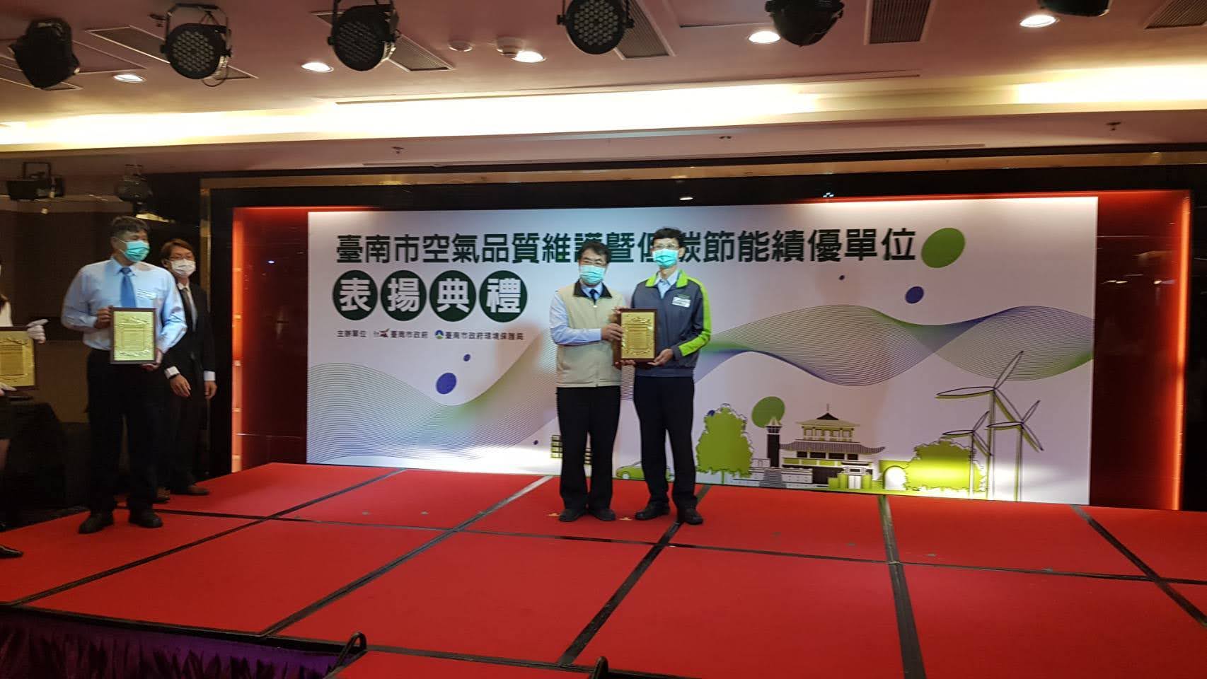 Science Park Logistics was awarded the certificate for winning the 2020 Tainan City Air Quality Maintenance and Low-carbon & Energy Conservation Outstanding Performance - Diesel Emissions Self-Management Award.